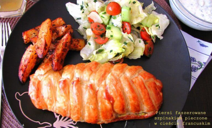 Genialny przepis, aby zaskoczyć gości! Idealnie komponuje się z pieczonymi ziemniakami i sałatką. Kurczak z poniższego przepisu jest wyjątkowo smaczny i soczysty, dzięki wykorzystaniu ciasta francuskiego.