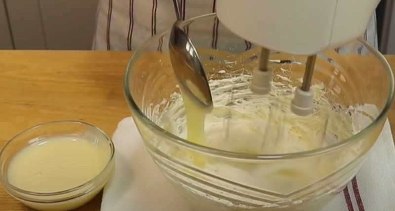 Stopniowo wlewaj do niego skondensowane mleko, kontynuując ubijanie. Należy pamiętać, że masło i mleko skondensowane powinny mieć mniej więcej taką samą temperaturę.