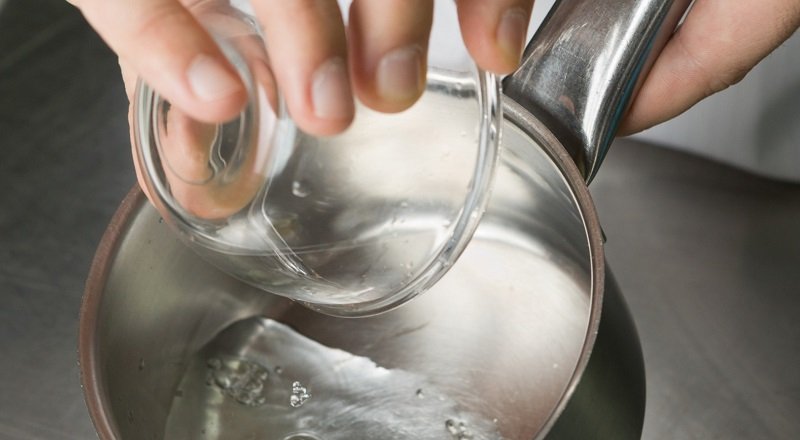 Aby przygotować syrop, dodaj cukier i cukier waniliowy do rondelka z grubym dnem i wlej wodę. Zagotuj, a następnie dodaj kwasek cytrynowy. Syrop gotuj na średnim ogniu przez 5 minut.