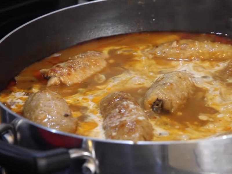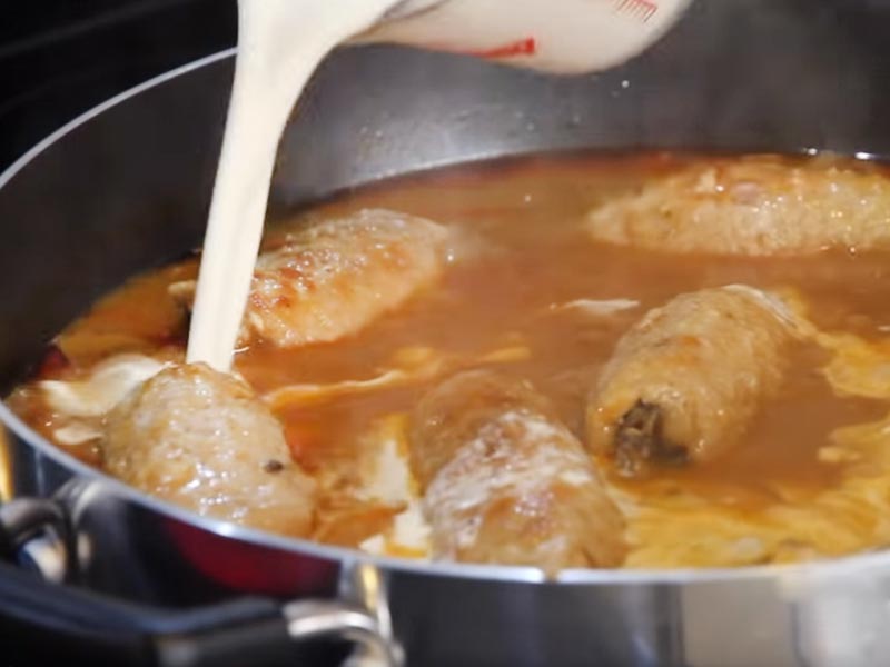 Sos należy dusić przez około 40 minut. 40 minut, pod przykryciem. Upewnij się, że roladki nie przywierają do patelni, mieszając od czasu do czasu sos. Gotuj roladki, aż będą miękkie.