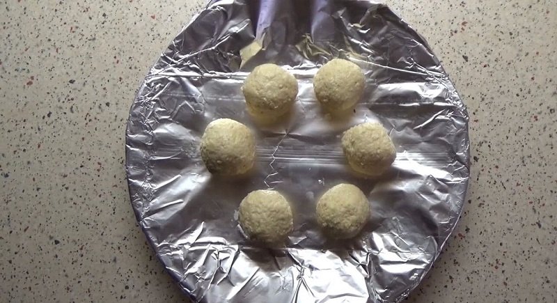 Po tym czasie kulki zanurzamy w odłożonej wcześniej czekoladzie oraz wiórkach kokosowych.