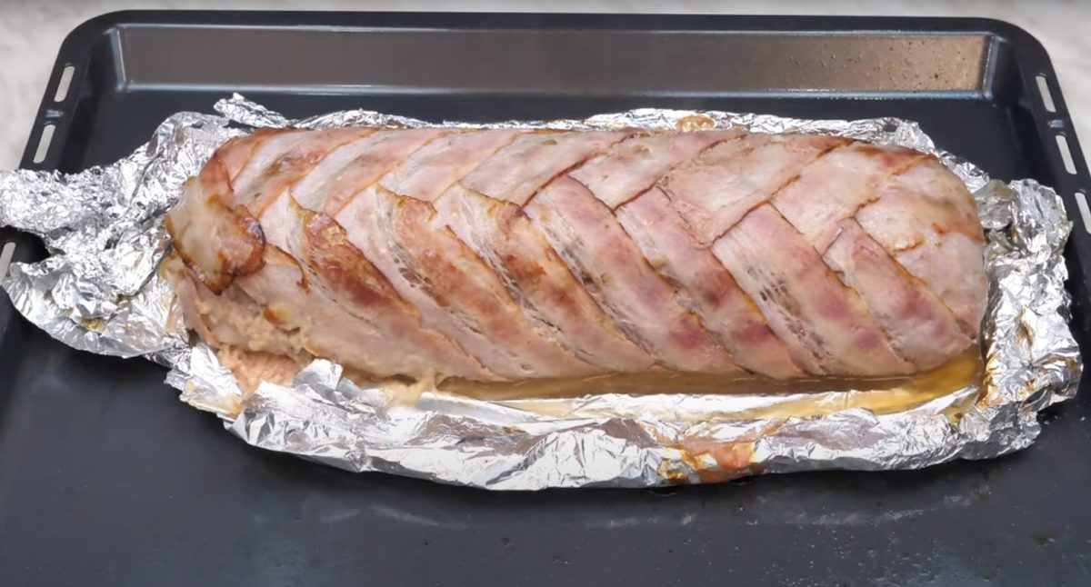 Następnie odwiń folię i piecz przez kolejne 10-15 minut, aby boczek się pięknie zarumienił.