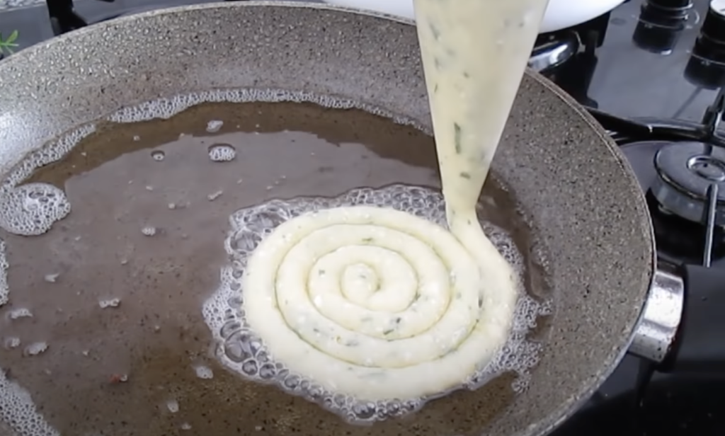 Włóż je do szprycy cukierniczej i wyciskaj bezpośrednio na gorący olej tworząc okrągłe spirale.