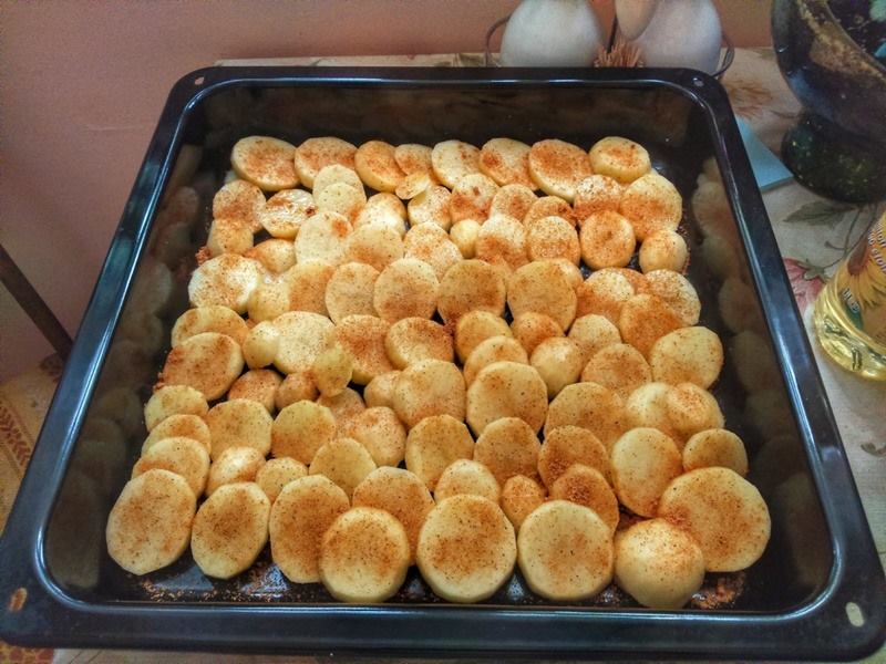 Ułóż pokrojone ziemniaki na blasze wyłożonej papierem do pieczenia. Ułóż ziemniaki na blasze wyłożonej papierem do pieczenia. Pozostałą marynatę możesz wykorzystać do zamarynowania karkówki. Pozostawić ją na 30 minut, aby wchłonęła aromaty przypraw.