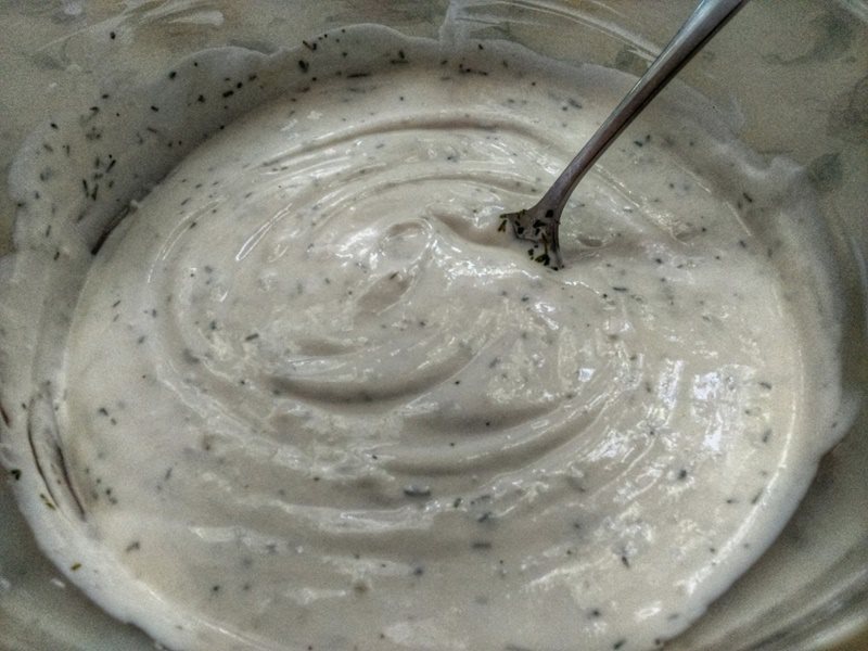 Przygotować sos czosnkowy. Rozdrobniony czosnek można dodać do śmietany lub jogurtu. Do sosu można dodać ulubione przyprawy. Dobrze sprawdzają się zioła prowansalskie.