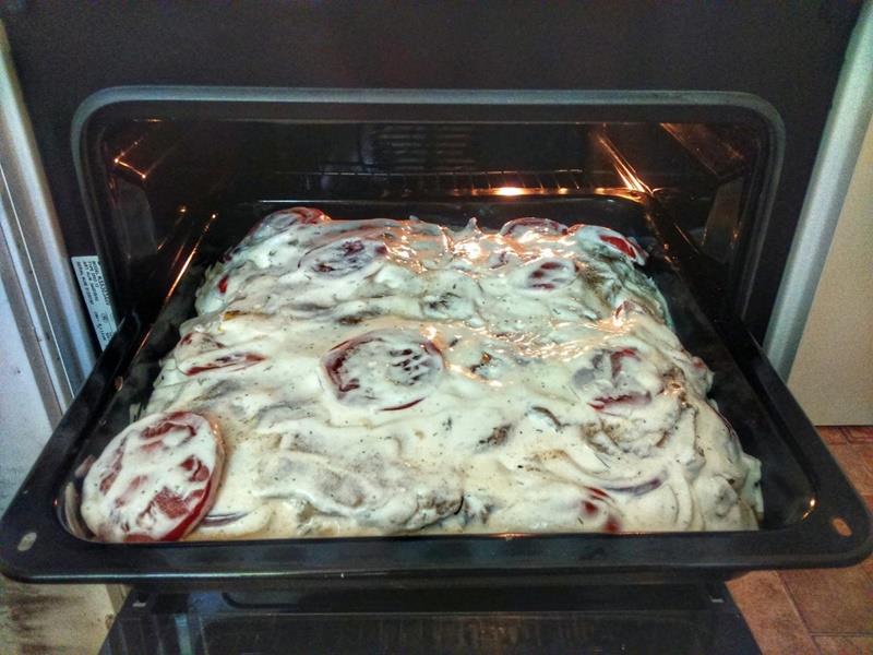 Można użyć folii aluminiowej do przykrycia blachy do pieczenia. Piec danie przez około godzinę w temperaturze 200° Celsjusza.