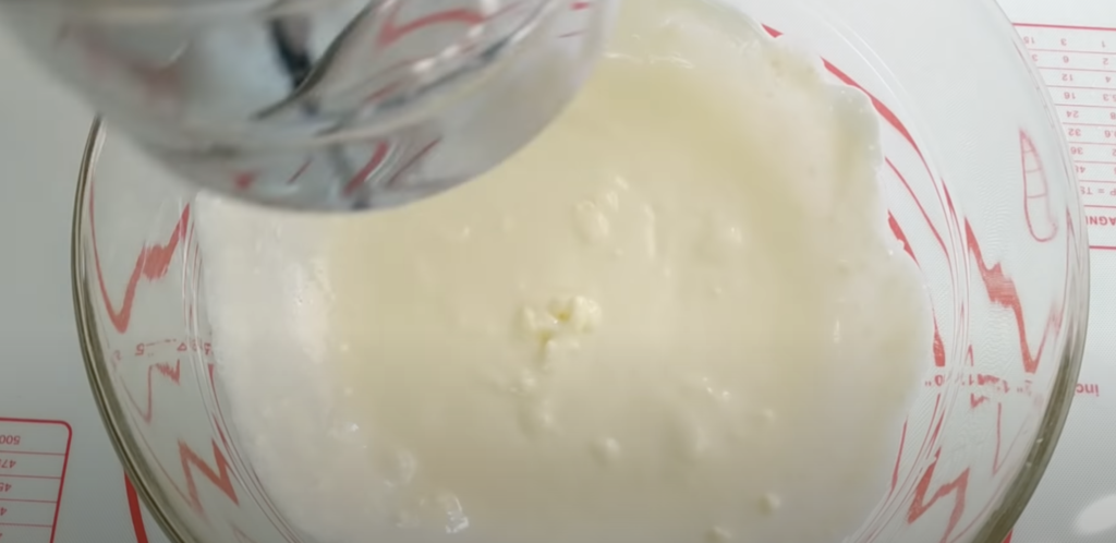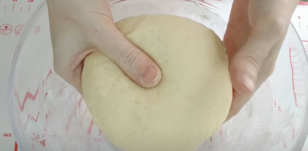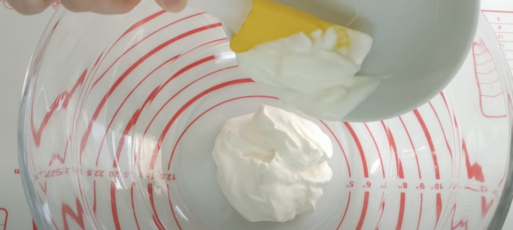 Mąkę przesiewamy i mieszamy z proszkiem do pieczenia, dodajemy do masy. Wyrabiamy ciasto.