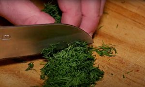 Z koperku usuń twarde łodyżki, liście drobno posiekaj i wrzuć do sosu. W tym momencie nie gotuj. Wystarczy dobrze wymieszać koperek i odstawić sos na chwilę.