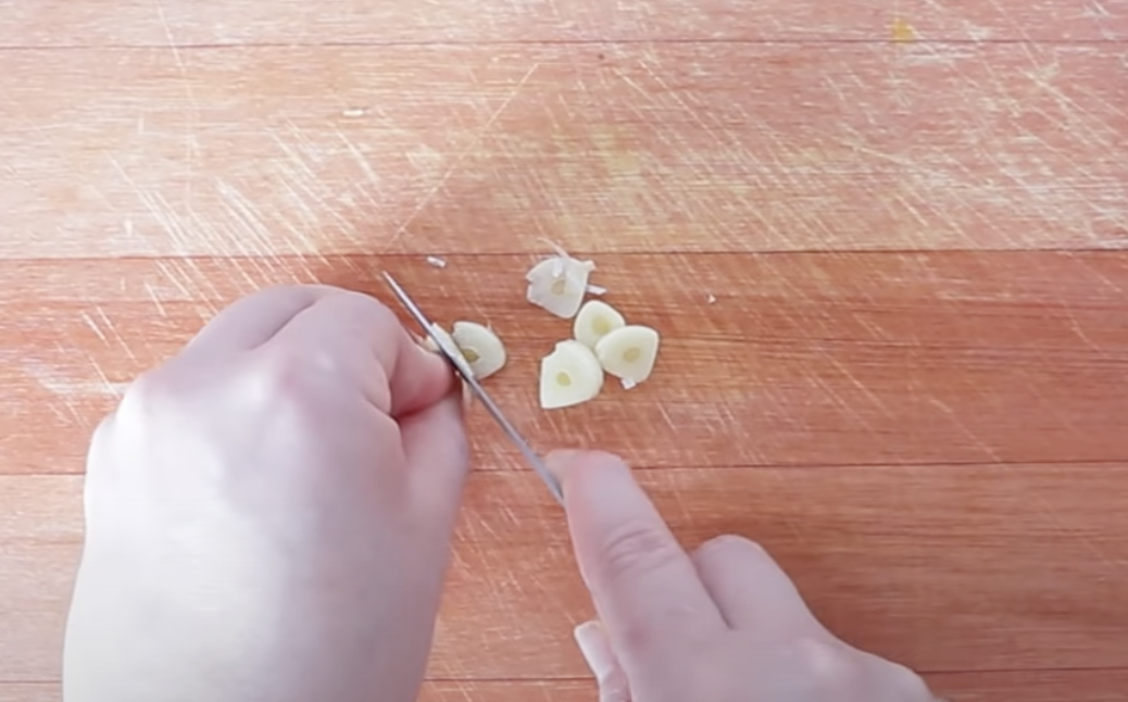 Czosnek obierz, oraz drobno pokrój, po czym zalej niewielką ilością wody i odstaw na minimum 15 minut.