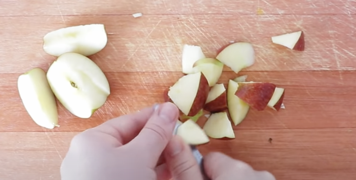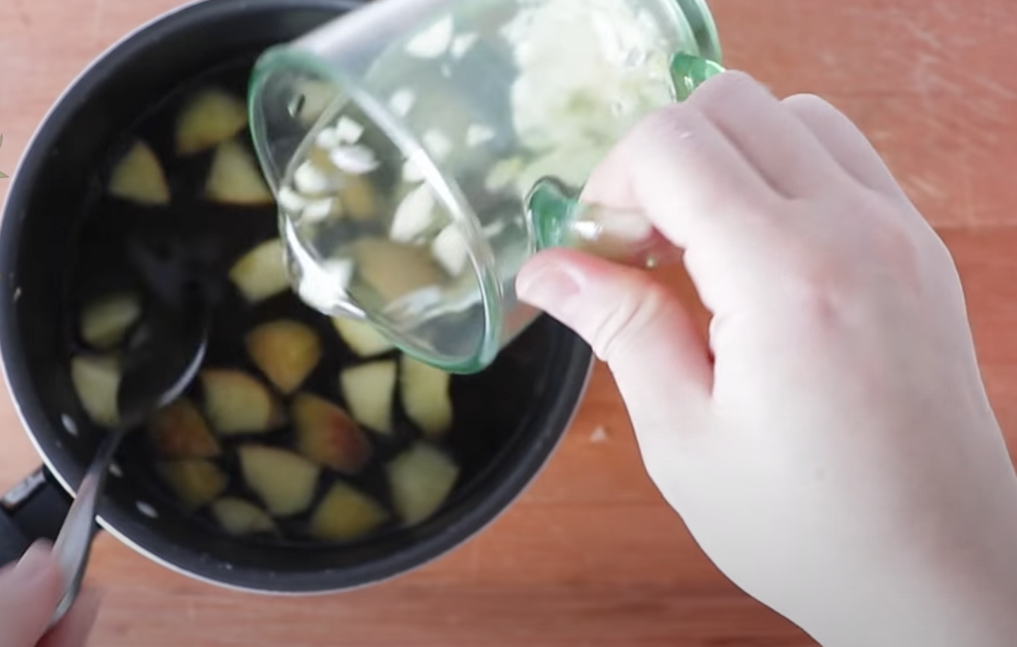Pokrój jabłko i razem z wodą i goździkami przełóż do garnka.