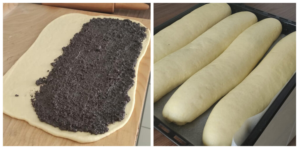 W misce wymieszaj zmielony mak, cukier puder, cukier waniliowy i ewentualnie cukier cynamonowy. Podgrzej mleko, aż będzie gorące, ale nie wrzące. Dosypujemy ją stopniowo do maku i mieszamy, aż powstanie gęsta, nadająca się do smarowania masa. Dla dodatkowego smaku można dodać łyżeczkę rumu. Pozwól nadzieniu ostygnąć podczas pracy z ciastem.