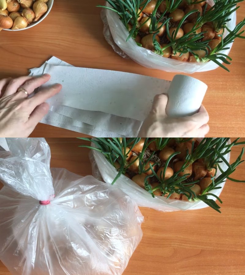 Dzięki temu już 10 dni wcześnie ujrzysz kiełkujące zioła. Kiedy skończysz namaczanie cebulek, musisz dokładnie je osuszyć i umieścić dość ciasno w torebce foliowej wypełnionej mokrymi trocinami (lub innymi elementami, podobnie jak w przypadku poprzedniej metody).