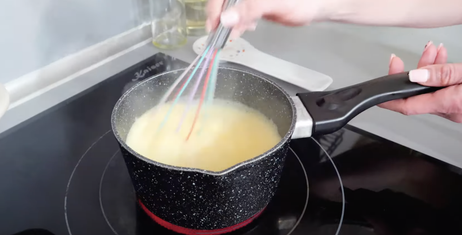 Precyzyjnie wymieszaj całość.Taką mieszaninę postaw na kuchenkę i gotuj tylko przez chwilę.