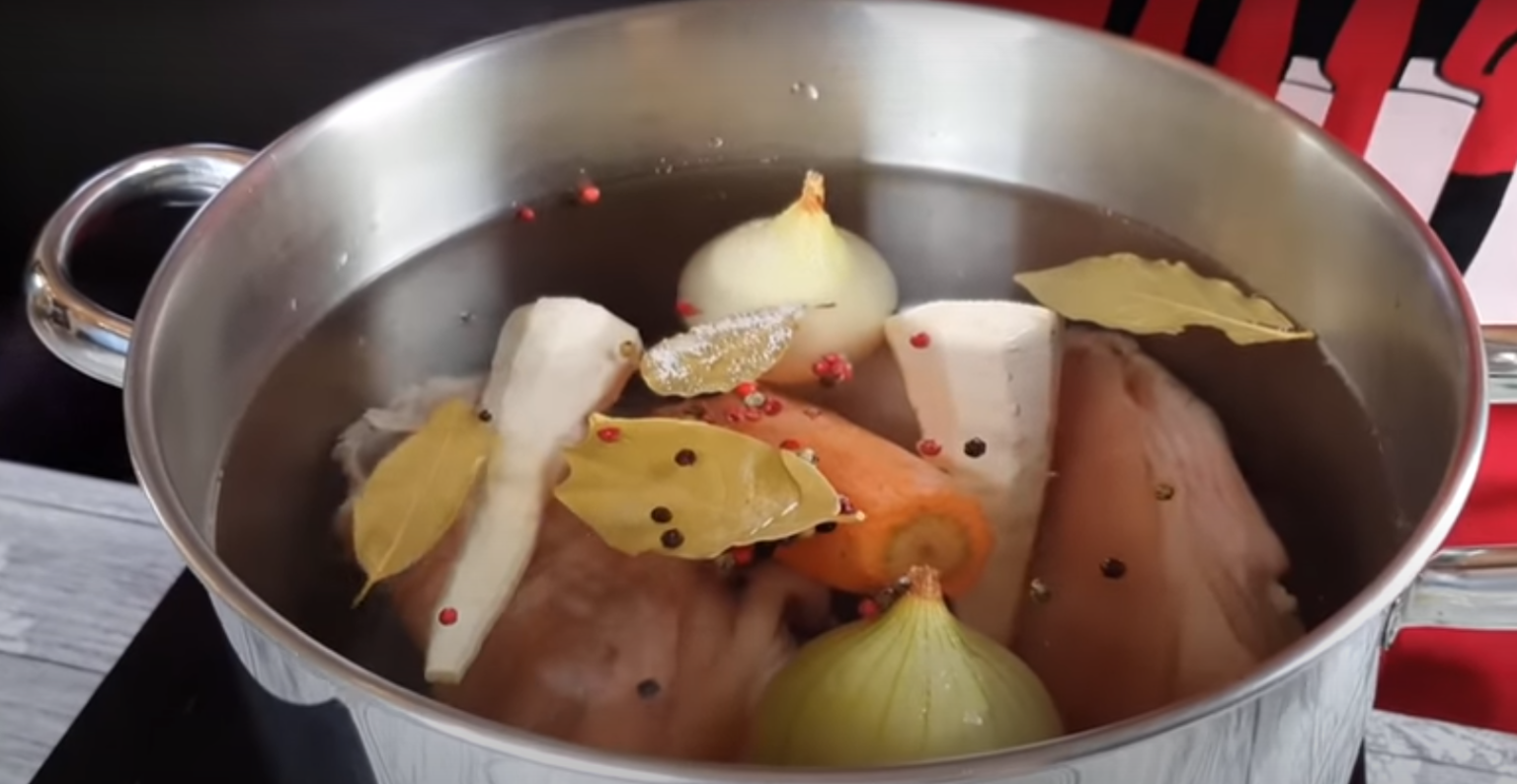 Do garnka włożyć warzywa, a potem gotować je wraz z mięsem, przyprawami i liśćmi laurowymi. Całość powinno gotować się 4 godziny – do momentu uzyskania miękkiego mięsa, które musi oddzielić się od kości.