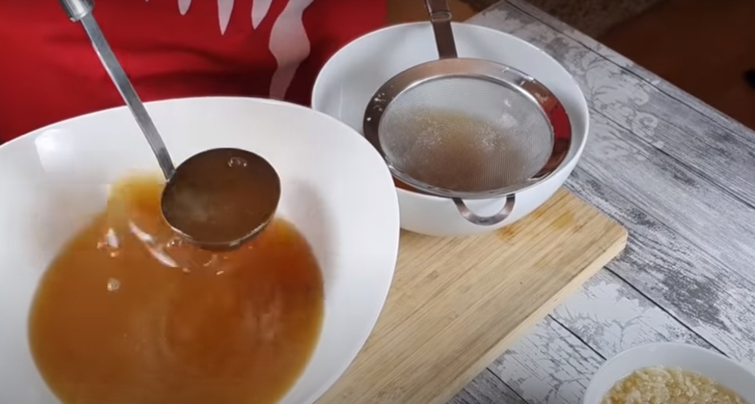 Wlać do niego około 2 chochelki bulionu i odstawić na zaledwie 5 minut. Po upływie tego czasu dwukrotnie przecedzić resztę bulionu.
