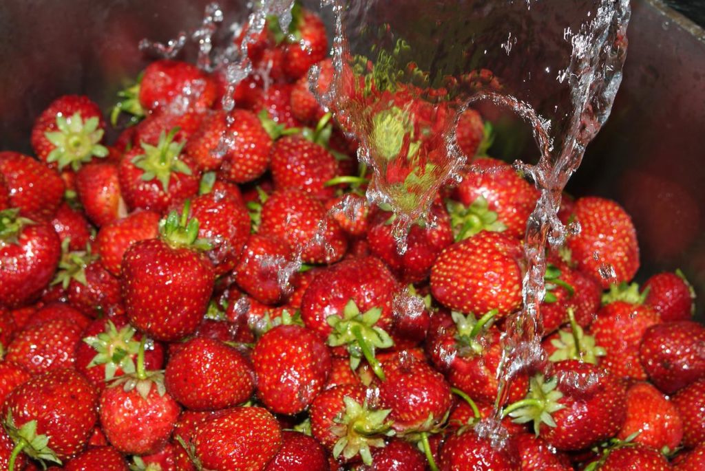 Przed zbiorem truskawek należy pamiętać o jednej ważnej rzeczy: owoce muszą być zdrowe i świeże. W przeciwnym razie smak zostanie zepsuty. Umieść truskawki w dużej misce. Zalej je zimną wodą.