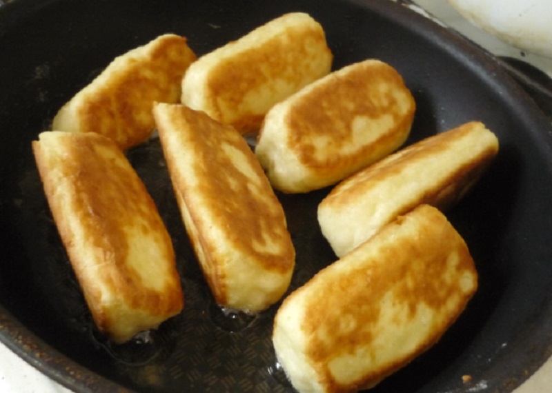 Wylej olej na patelnię i rozgrzej. Smaż batoniki twarogowe z obu stron, aż uzyskają złoty kolor. Aby były dobrze wysmażone, przewracaj je do kilku razy.