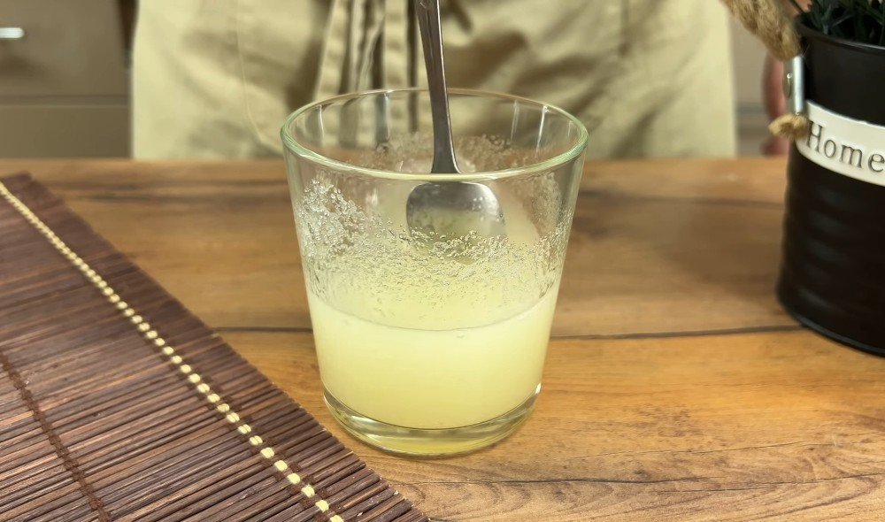 Połącz żelatynę z wodą, aż do całkowitego rozpuszczenia. Obierz banany, a następnie dodaj je do twarogu. Zmiksuj wszystkie składniki w blenderze. Wymieszaj żelatynę i twaróg razem z bananem.