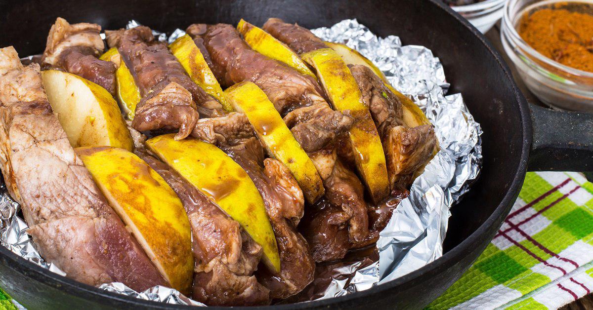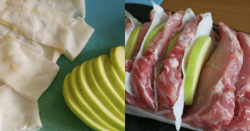 Jabłka i wino nadają mięsu niepowtarzalny smak, a smalczyk sprawia, że ​​jest bardziej delikatne i soczyste. Proste, dość szybkie w przygotowaniu, ale bardzo reprezentacyjne danie!