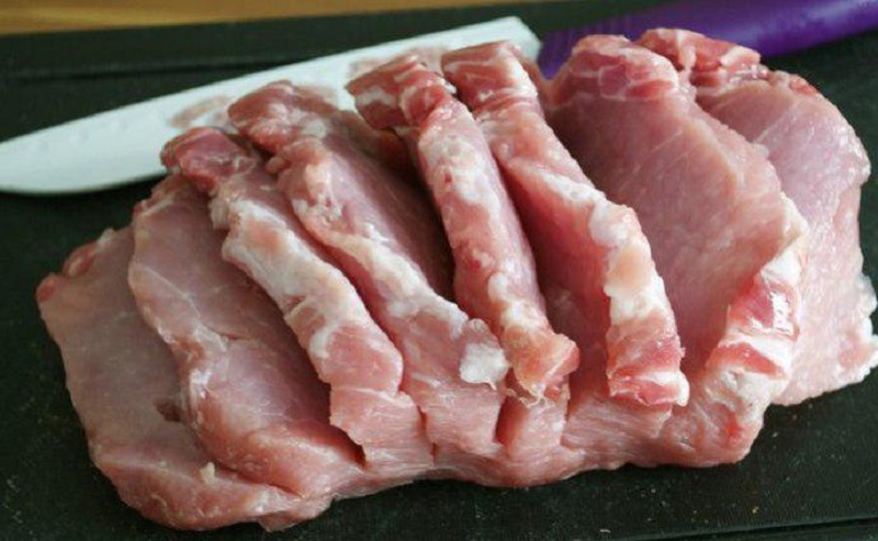 Wykonaj dość głębokie poprzeczne nacięcia na kawałku wieprzowiny, ale nie przecinaj jej do końca.
