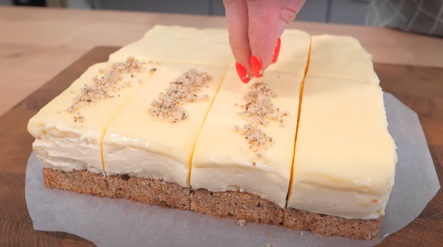 W osobnym naczyniu w kąpieli wodnej przygotowujemy polewę z czekolady, masła i śmietany. Polewamy cały deser i wkładamy tak przygotowane ciasto do lodówki na całą noc. W ramach ozdoby możemy posypać całość pokruszonymi orzechami.