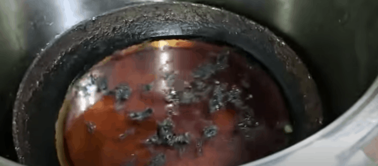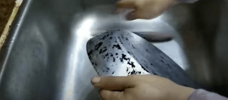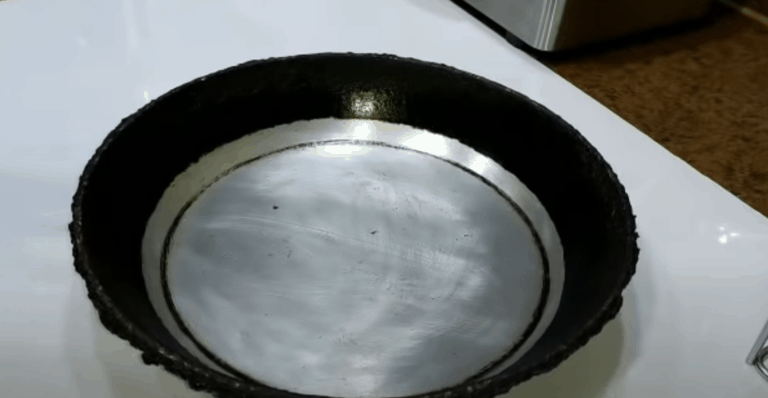 Przypalenia, nawet te najgorsze, znikają po kilku godzinach. Oto jak wyglądała patelnia przed użyciem metody: czarne krawędzie i zewnętrzna powierzchnia, nieużywana od lat.