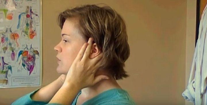 Następnie ułóż ręce poniżej uszu i wykonuj delikatne ruchy w dół – pamiętaj, aby zawsze wracać do początkowej pozycji!