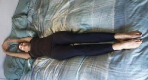 Wyprostuj jedną rękę, a drugą ugnij kolana, wykonując obroty. Ćwicz, dotykając łopatkami materaca, utrzymując pozycję przez 10 sekund. Wykonaj ćwiczenie w przeciwną stronę, powtarzając 5-6 razy, co zwiększy krążenie krwi i wzmocni mięśnie pleców.