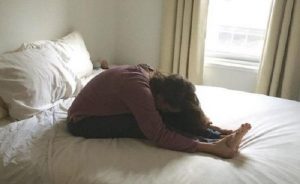 Na łóżku rozluźnij się, biorąc kilka głębokich oddechów. Po skłonach do przodu, powtórz ruch 10 razy, rozluźniając ciało. Idealne przygotowanie kręgosłupa do pracowitego dnia.