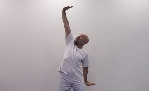 Prosto stojąc, z rękoma zgiętymi w łokciach i dłońmi rozłożonymi przed sobą, zacznij ćwiczenie. Z głębokim wdechem, jedną rękę unieś, otwierając dłoń na zewnątrz, jakbyś coś odpychał, przy czym głowa w stronę uniesionej dłoni skierowana jest. Przeciwną rękę wyciągnij w dół. Po wdechu, rękę wyciągnij w górę, drugą w dół, rozciągając tym samym kręgosłup i ramiona.